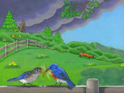 It’s the fledgling’s first day in the big world. But this June morning animals are restless. They feel a change in the air. Storm clouds are rolling in from the west.