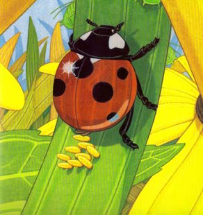 She lays her eggs on a flower stem.