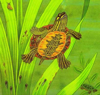 Here is my drawing of the baby turtle’s first swim.