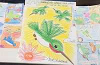 I use many visuals, like sketches, final printed sheets, and actual illustrations from my books. I show slides of the habitats I created, the animals I researched, and rough drafts of the text. I discuss the importance of writing and rewriting a story to make it better. I end each session by doing a large full-color piece of art to demonstrate my ‘speed drawing’ technique which I donate to your school or library. I am able to do 4, one-hour presentations in a day.